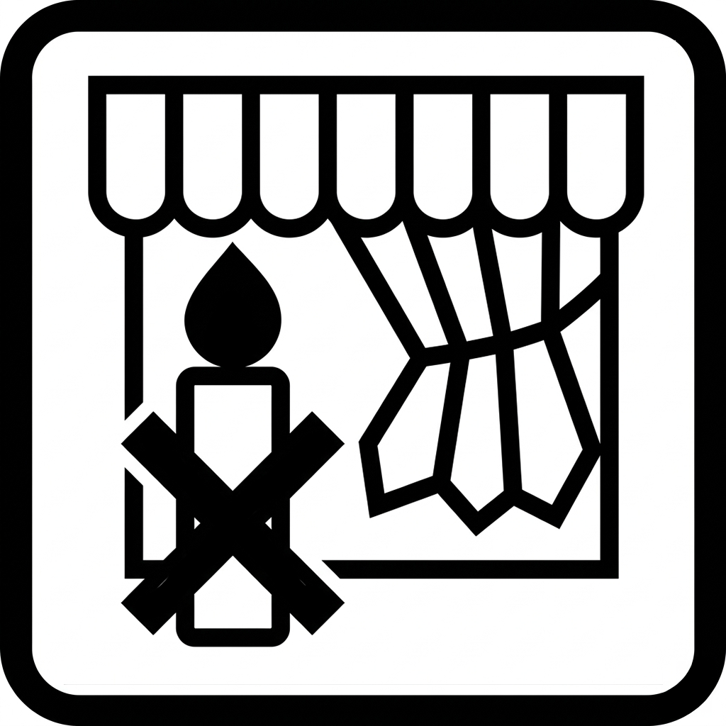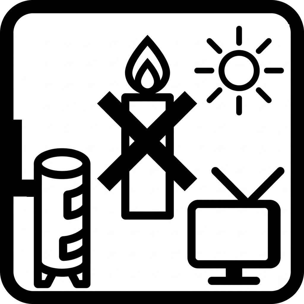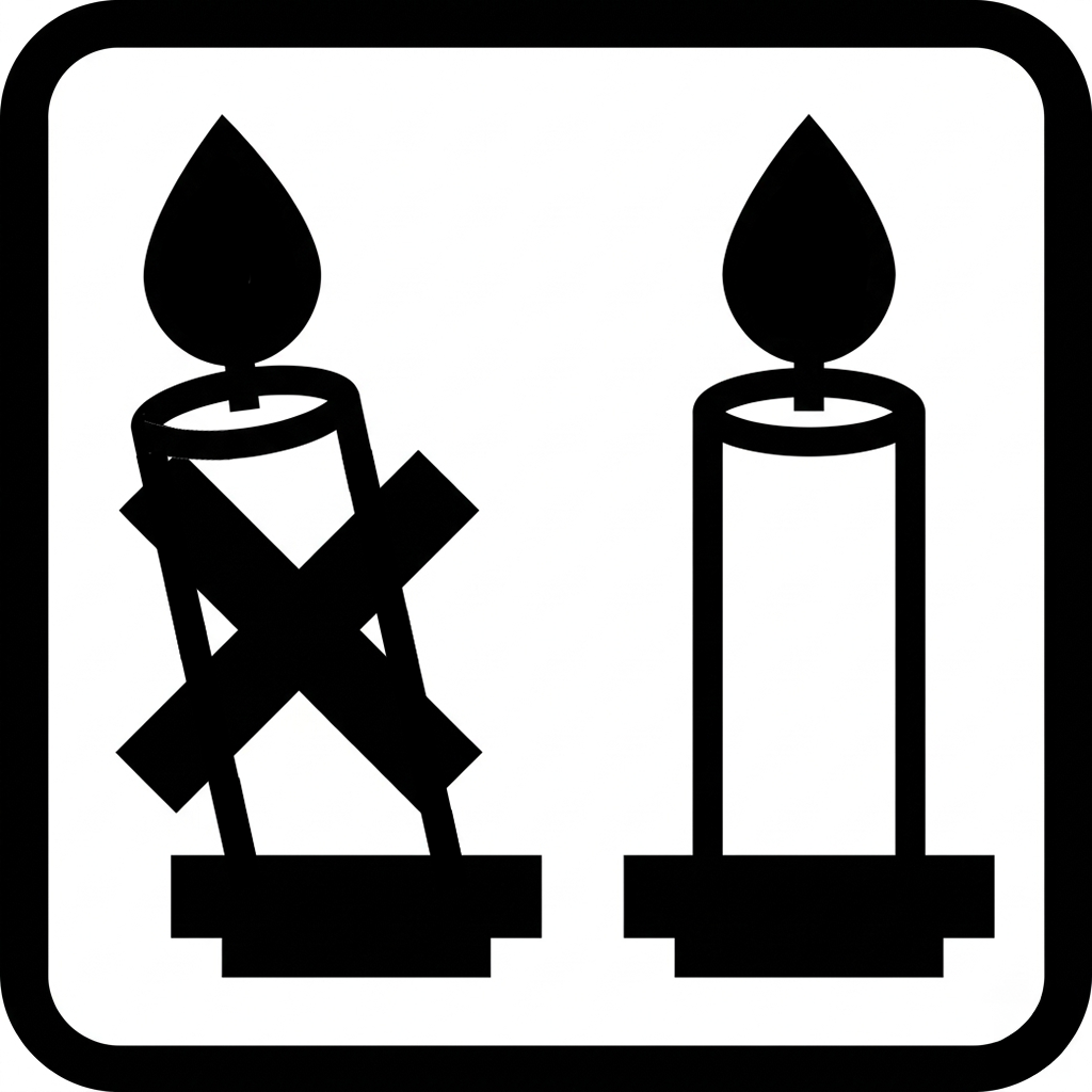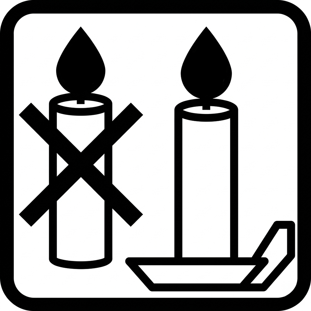 Chronić przed innymi źródłami ciepła. Nie stosować w sytuacji narażania na inne ciepło. | Nie przenosić świecy podczas palenia! |