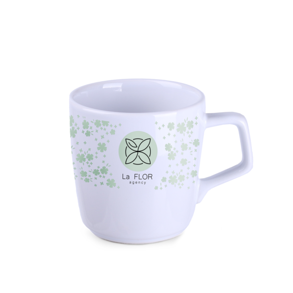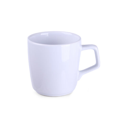 Porcelanowy kubek o obłym kształcie. Posiada oryginalny, przyciągający uwagę uchwyt oraz duże możliwości w zakresie barwień.