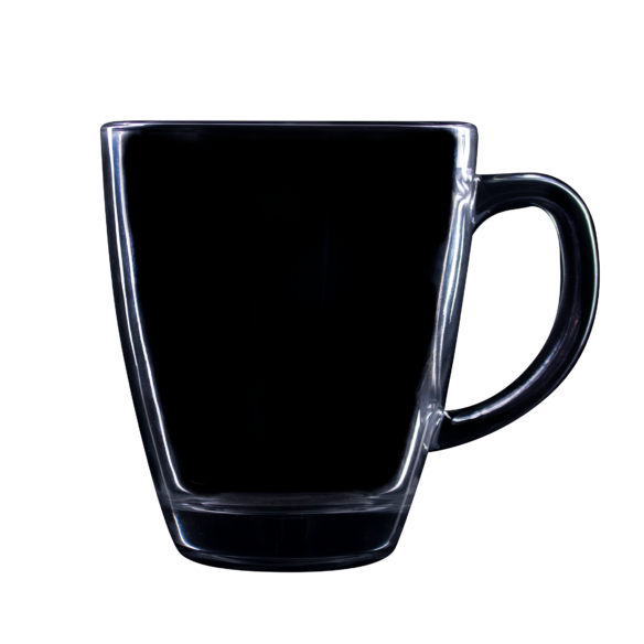 Szklany kubek o obłym kształcie i ergonomicznym uchu. Wykonany z grubego szkła, posiada stabilną podstawę.