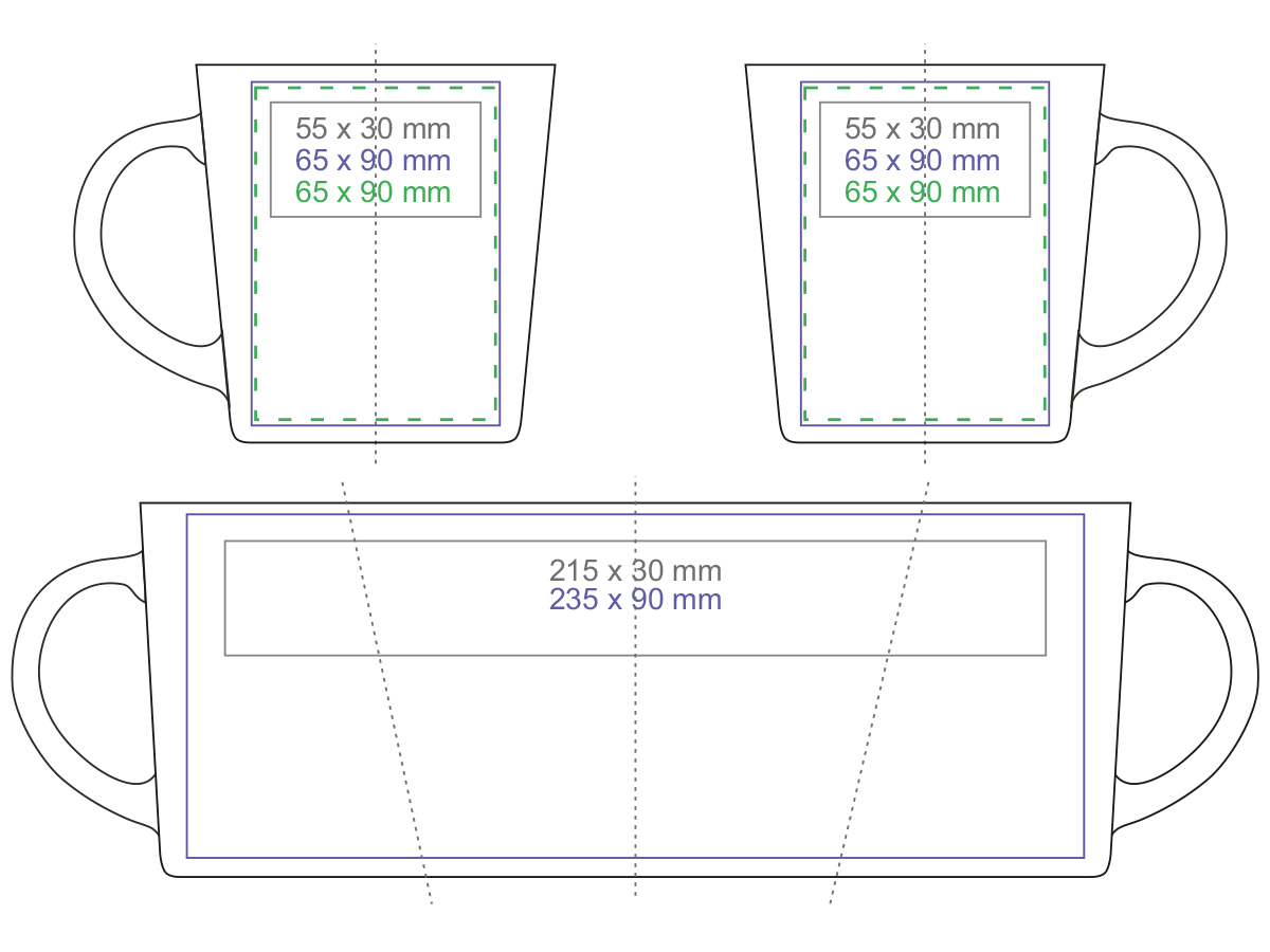 Klasyczny porcelanowy kubek o dużych mozliwościach w zakresie customizacji. Jego duże proste ścianki doskonale wyeksponują naniesiony na niego nadruk.