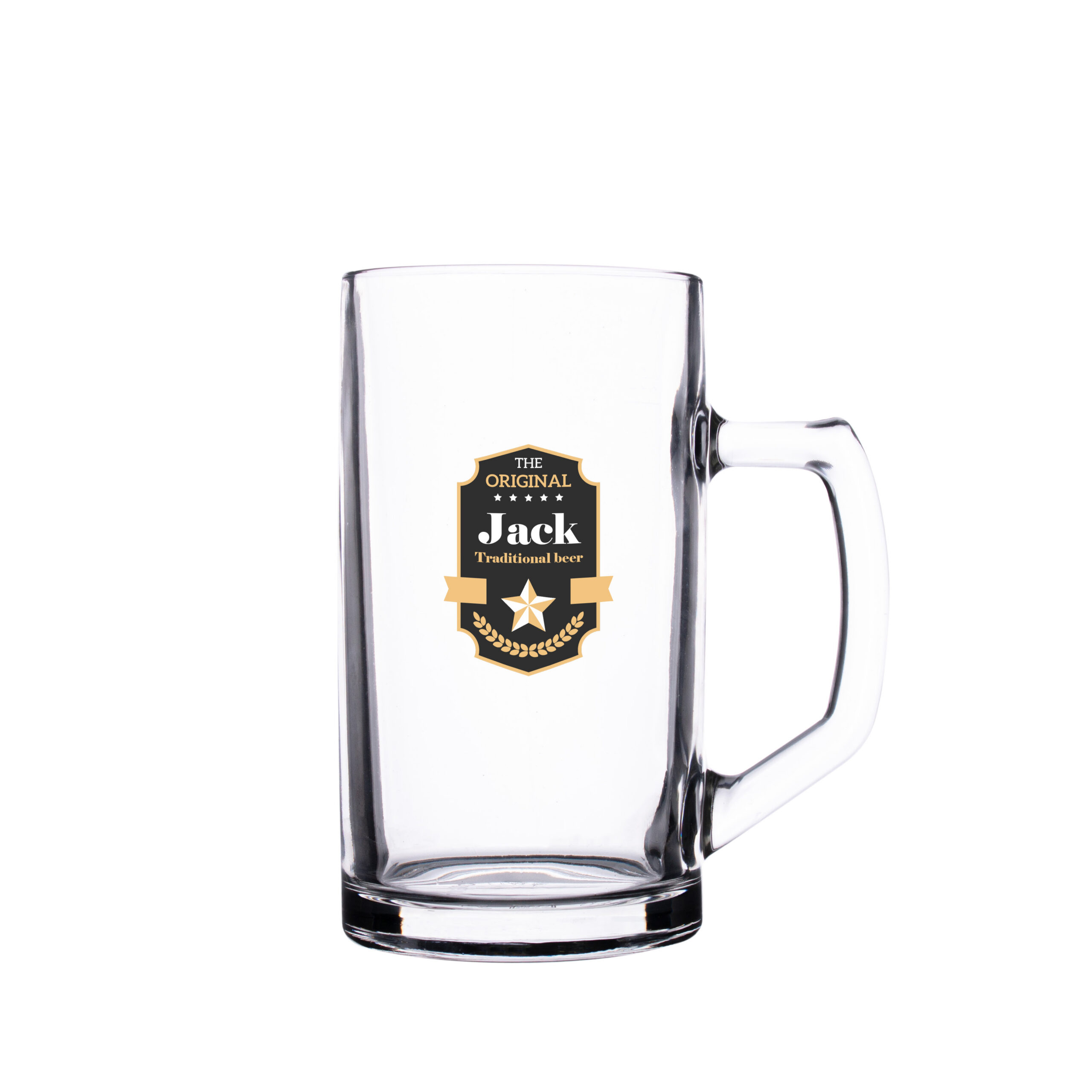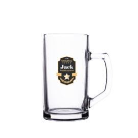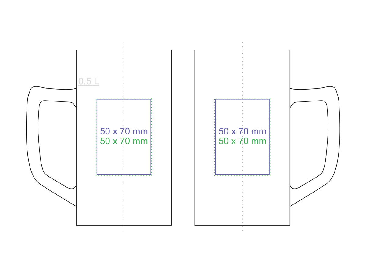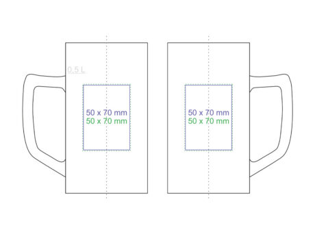Klasyczny kufel z ciekawym uchwytem i bardzo dużym polem nadruku.