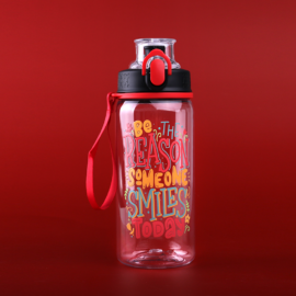 Bidon wykonany z tritanu – materiału, który jest w pełni bezpieczny, lekki, nietłukący, nie powoduje zmiany smaku przechowywanych napojów, chroni napój przed promieniowaniem UV. Dzięki występującej w kilku opcjach kolorystycznych, wykonanej z materiału smyczy na nadgarstek stanowi idealny upominek nie tylko dla osób aktywnych. Dodatkowo posiada zabezpieczenie manualne uniemożliwiające przypadkowe otwarcie.