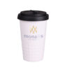 Designerski kubek mobilny wykonany z porcelany. Posiada charakterystyczne wykończenie dolnej części w postaci wypustek. Model skierowany dla osób aktywnych, miłośników wycieczek i podróży. Dzięki rzadko spotykanej, wewnętrznej strukturze podwójnych ścianek z porcelany charakteryzuje się podwyższonym poziomem izolacji termicznej. Posiada przykrywkę ze szczelną zatyczką dostępną w kilku kolorach.