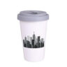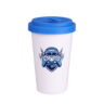 Porcelanowy kubek reklamowy z polimerową przykrywką z dodatkową zatyczką chroniącą przed przypadkowym rozlaniem napoju. Model skierowany dla osób aktywnych, miłośników wycieczek i podróży. Dzięki rzadko spotykanej, wewnętrznej strukturze podwójnych ścianek z porcelany kubek ten charakteryzuje się podwyższonym poziomem izolacji termicznej. Przykrywka dostępna jest w kilku kolorach.