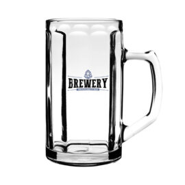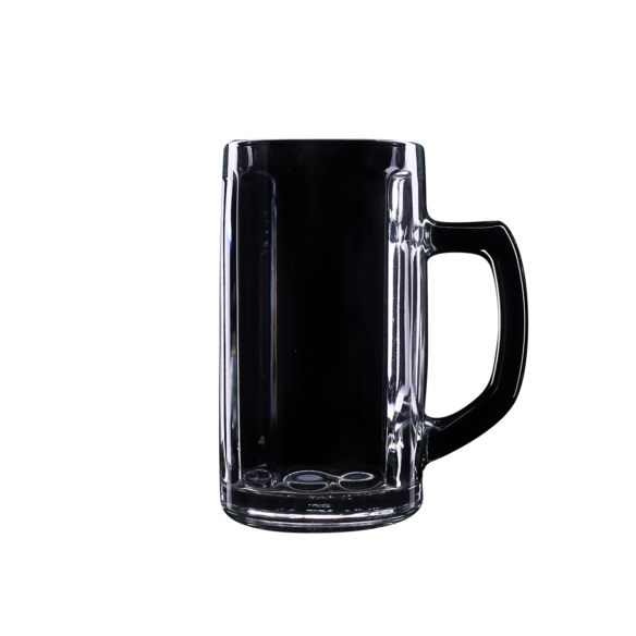 Pojemny prosty kufel do piwa produkowany w Europie. Posiada ergonomiczne ucho oraz ozdobne załamania na korpusie.