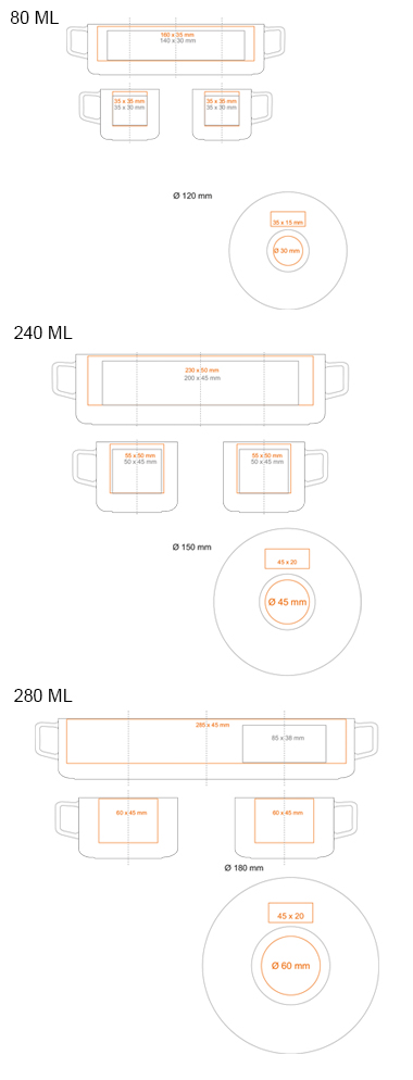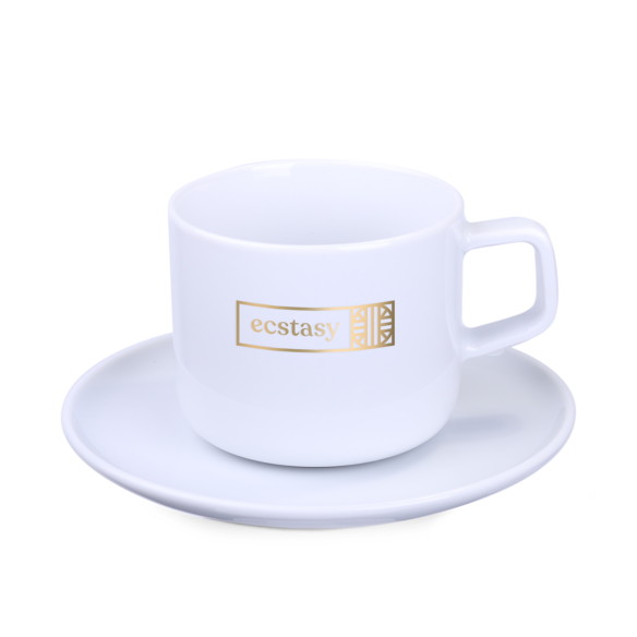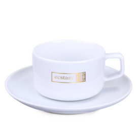 Elegancki i szykowny komplet porcelanowy z trzema rozmiarami filiżanek dla miłośników różnego rodzaju ciepłych napojów. Pozwalają kompleksowo promować idee marki. Wyprodukowano w UE.
