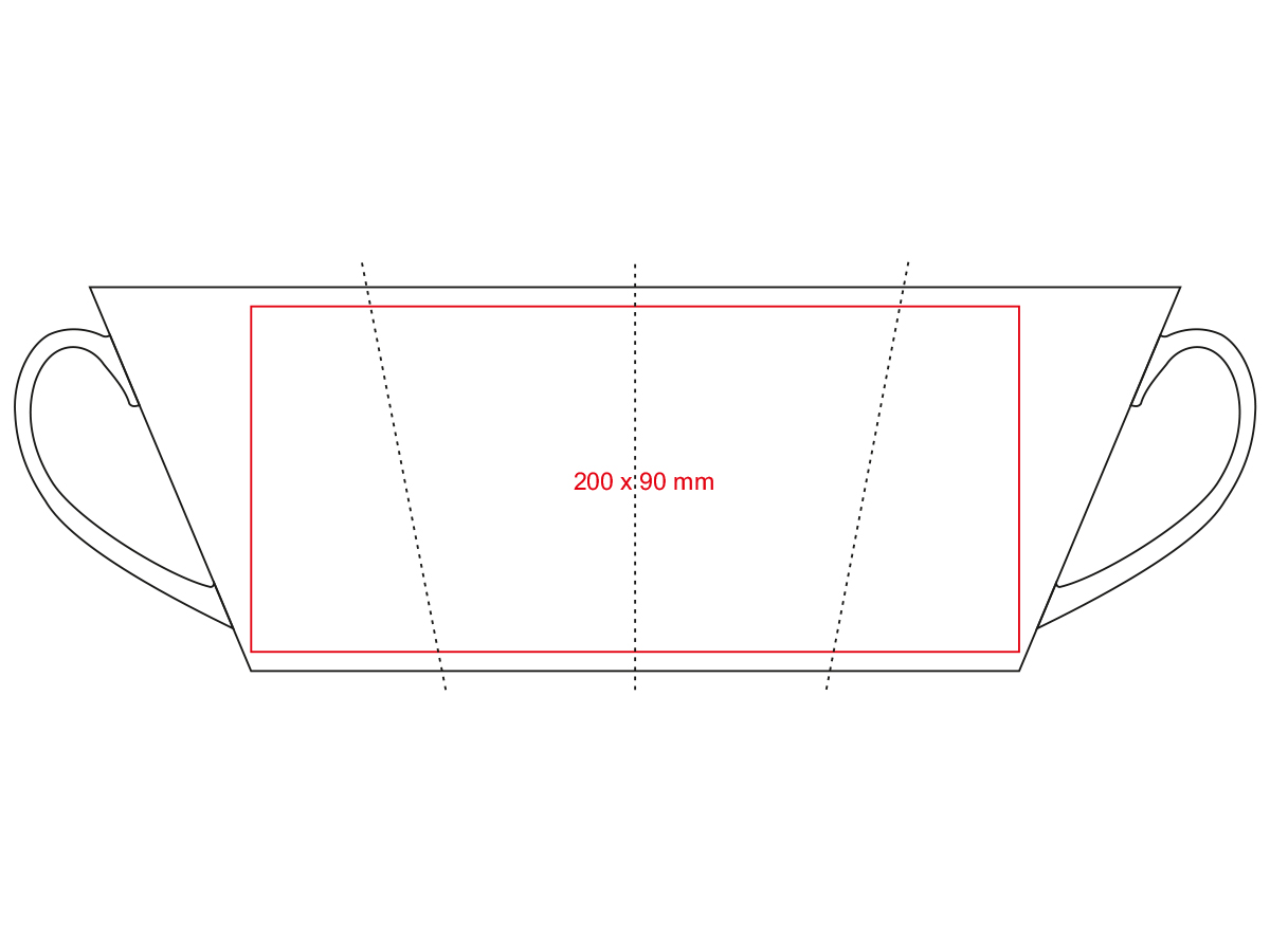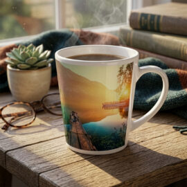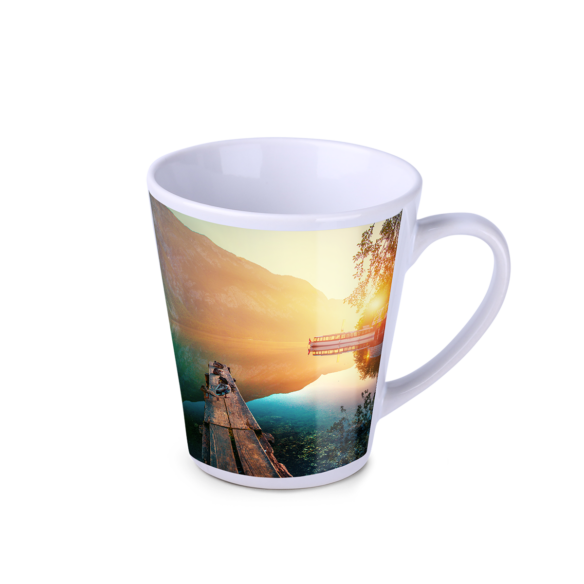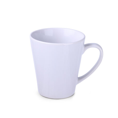 Kubek sublimacyjny o klasycznym trapezowym kształcie. Można nanosić na niego nadruki w fotograficznej jakości. Posiada ergonomiczne ucho.