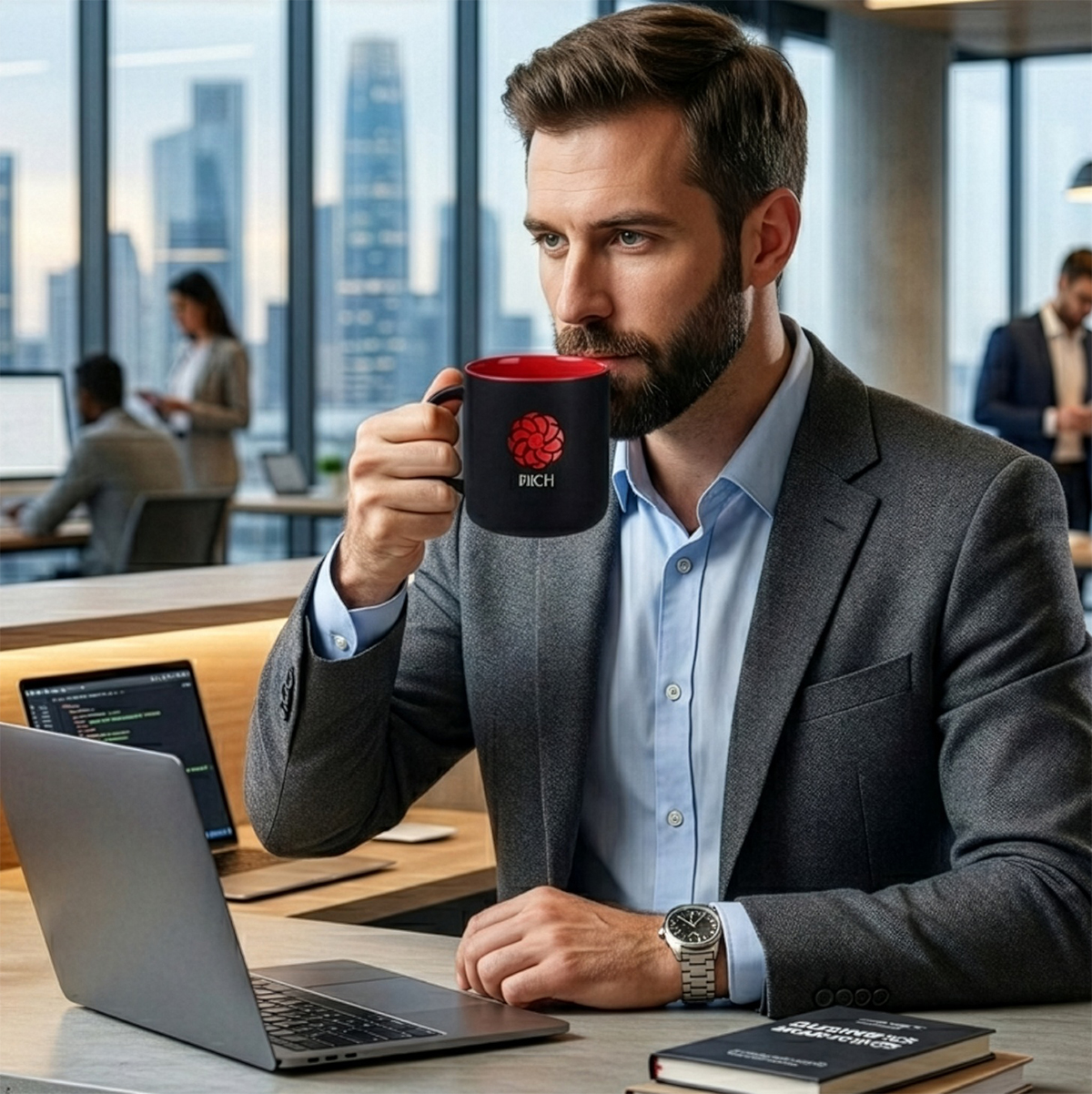 Jeden z naszych bestsellerów o nowoczesnym designie i satynowej w dotyku czarnej matowej powierzchni. Posiada duże pole do nanoszenia zdobień. Występuje w kilku wersjach kolorystycznych wnętrza.