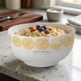 Porcelanowa miseczka o klasycznych zaokrąglonych brzegach. Idealnie nadaje się do różnego rodzaju płatków śniadaniowych. Doskonale wyeksponuje naniesiony na nią branding.