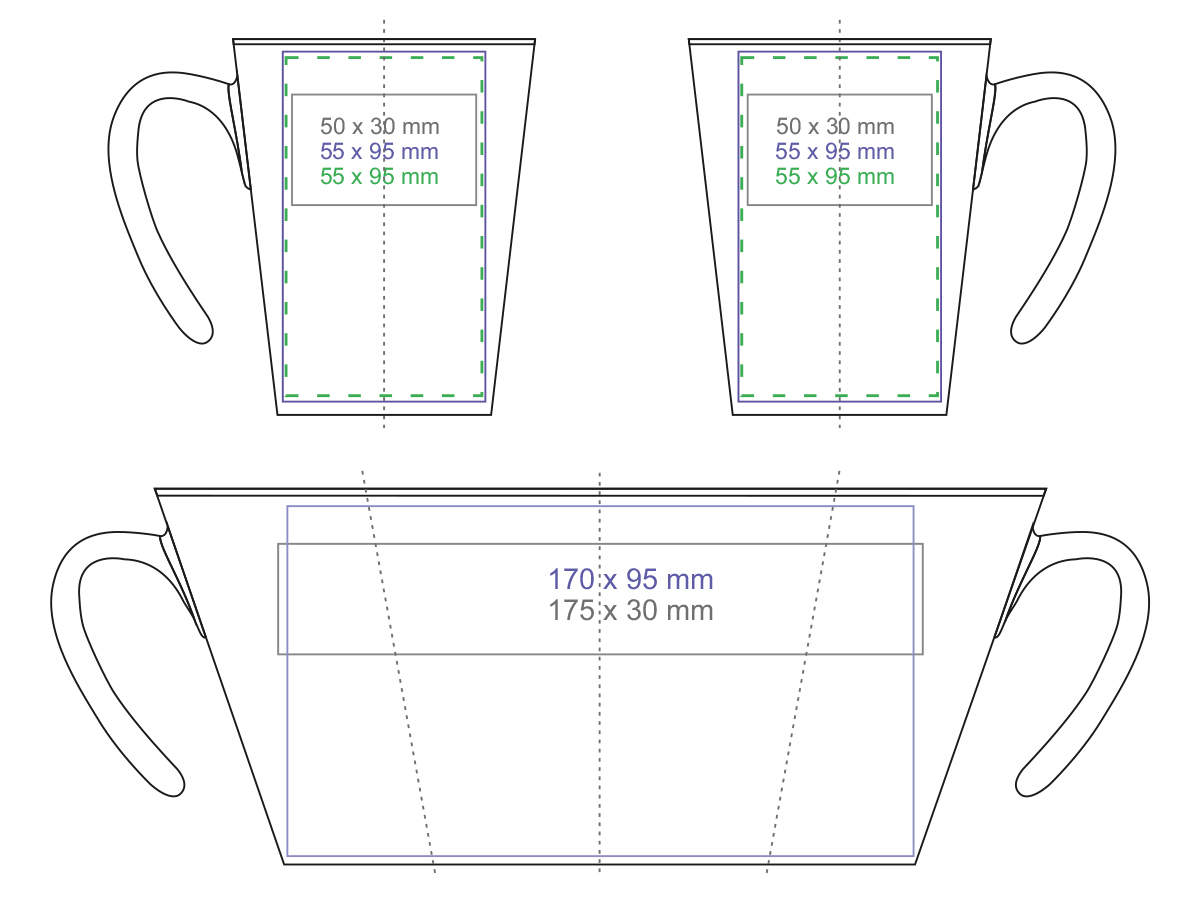 Oryginalny kubek z nowoczesnym „otwartym” uchem. Posiada wnętrze w 4 kolorach do wyboru oraz korespondujące z nim ucho. Jego proste ścianki idealnie nadają się do obszernych nadruków.