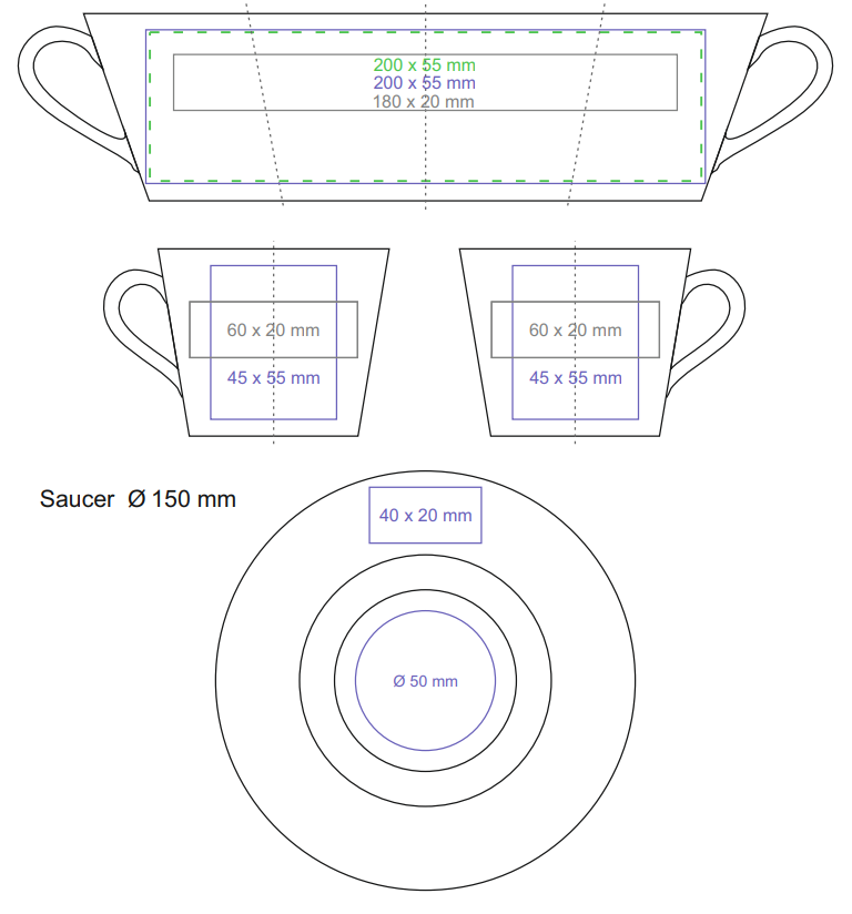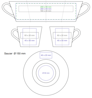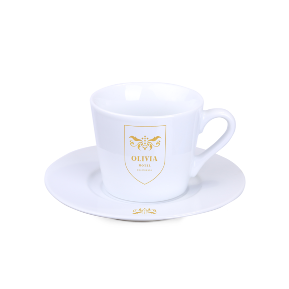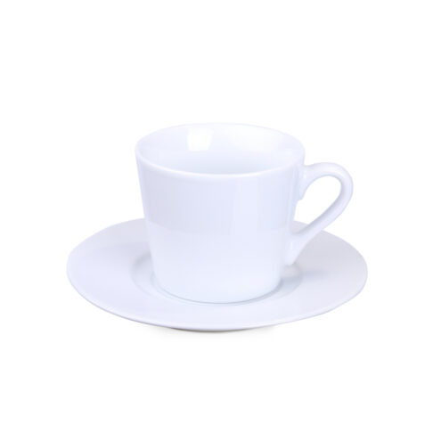 Subtelna filiżanka wykonana z wysokiej jakości porcelany. Jej proste ścianki doskonale wyeksponują naniesione zdobienie. Posiada prosty spodek, który nadaje się do wielokolorowych nadruków.
