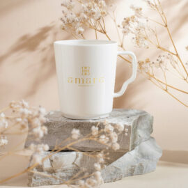 Ekskluzywny model o ciekawym kształcie. Wykonany z pięknej, najwyższej klasy porcelany – Fine Bone China. Wyjątkowo lekki o cienkich i prostych ściankach ściankach, które idealnie wyeksponują zamieszczony na nich branding.