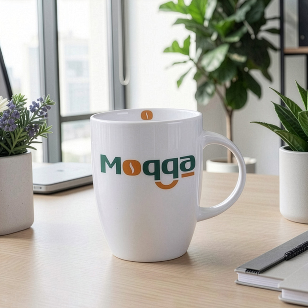 Elegancki, kubek o nieco wydłużonym, obłym kształcie. Wykonany z wysokiej jakości europejskiej porcelany. Idealnie nadaje się do różnych opcji barwienia.
