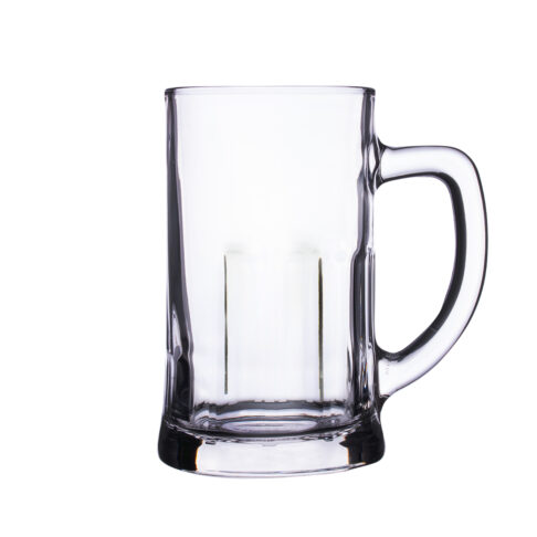 Masywny kufel do piwa o grubych ściankach. Posiada wygodny uchwyt oraz charakterystyczne żłobienia w dolnej części.