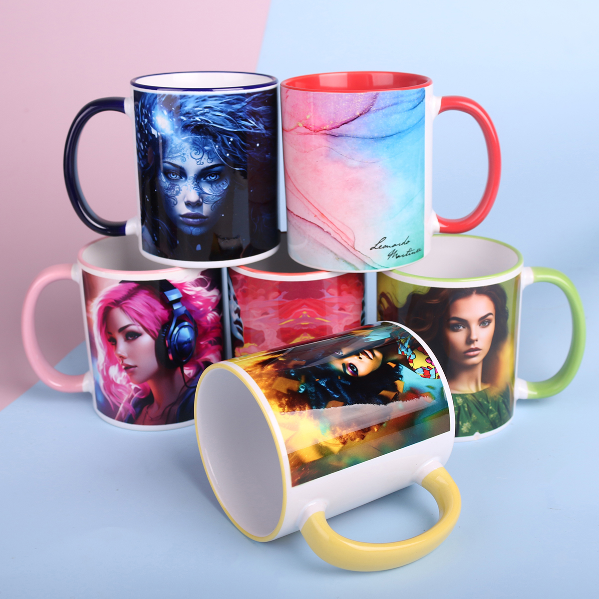 Wyjątkowo kolorowy kubek sublimacyjny o prostym kształcie. Idealny do nanoszenia nadruków w fotograficznej jakości. Tym, co go wyróżnia są barwione aż w 8 wersjach kolorystycznych rant i ucho.