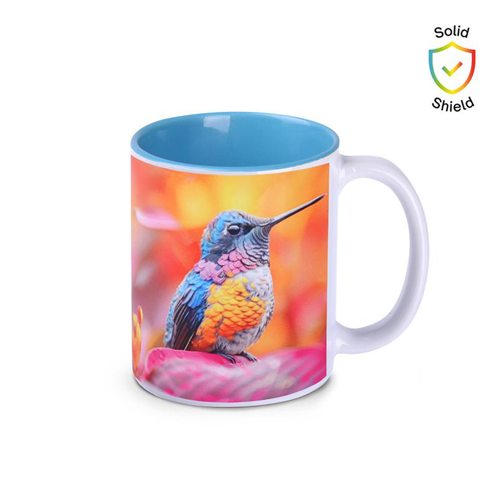 Odkryj popularny kubek sublimacyjny o ponadczasowym designie. Jego barwione wnętrze, dostępne w wielu odcieniach, doskonale podkreśli charakter Twojej marki. Ciesz się fotograficzną jakością nadruku i wyjątkową trwałością dzięki opatentowanej powłoce Solid Shield – gwarancja ponad 1000 cykli mycia w zmywarce!