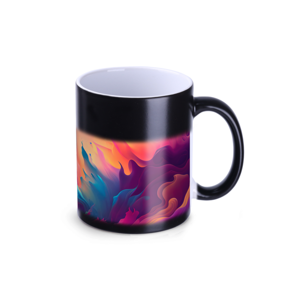 Matowa wersja kubka o klasycznym designie, na którym po zalaniu go wrzątkiem w „magiczny” sposób wyłania się nadruk. Można na niego nanosić nadruki w fotograficznej jakości. Dla fanów zaskakujących efektów.