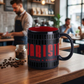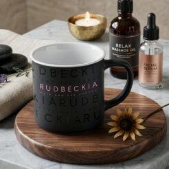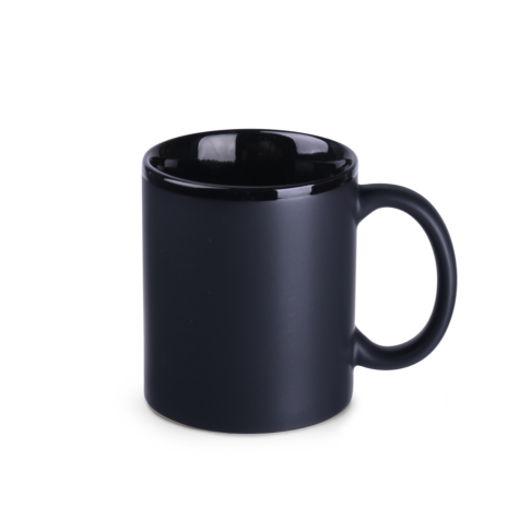 Czarna matowa wersja popularnego modelu o prostych ściankach i cylindrycznym kształcie. Posiada 6 kolorów wnętrza do wyboru oraz kontrastowe wykończenie błyszczącym paskiem, które dodatkowo podkreślą naniesiony na niego wyjątkowy branding.