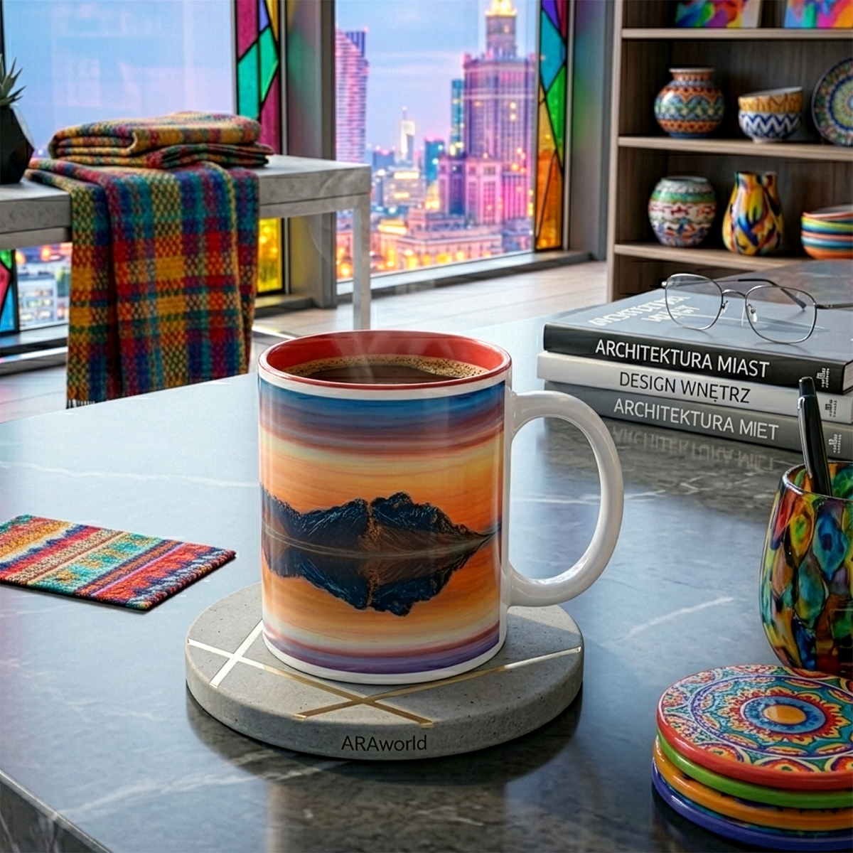 Ciekawy model w ofercie kubków sublimacyjnych. Wyróżnia go fotograficzna jakość nadruku oraz oryginalny, a zarazem ergonomiczny kształt ucha. Posiada wnętrza w kilku kolorach do kolorach do wyboru.