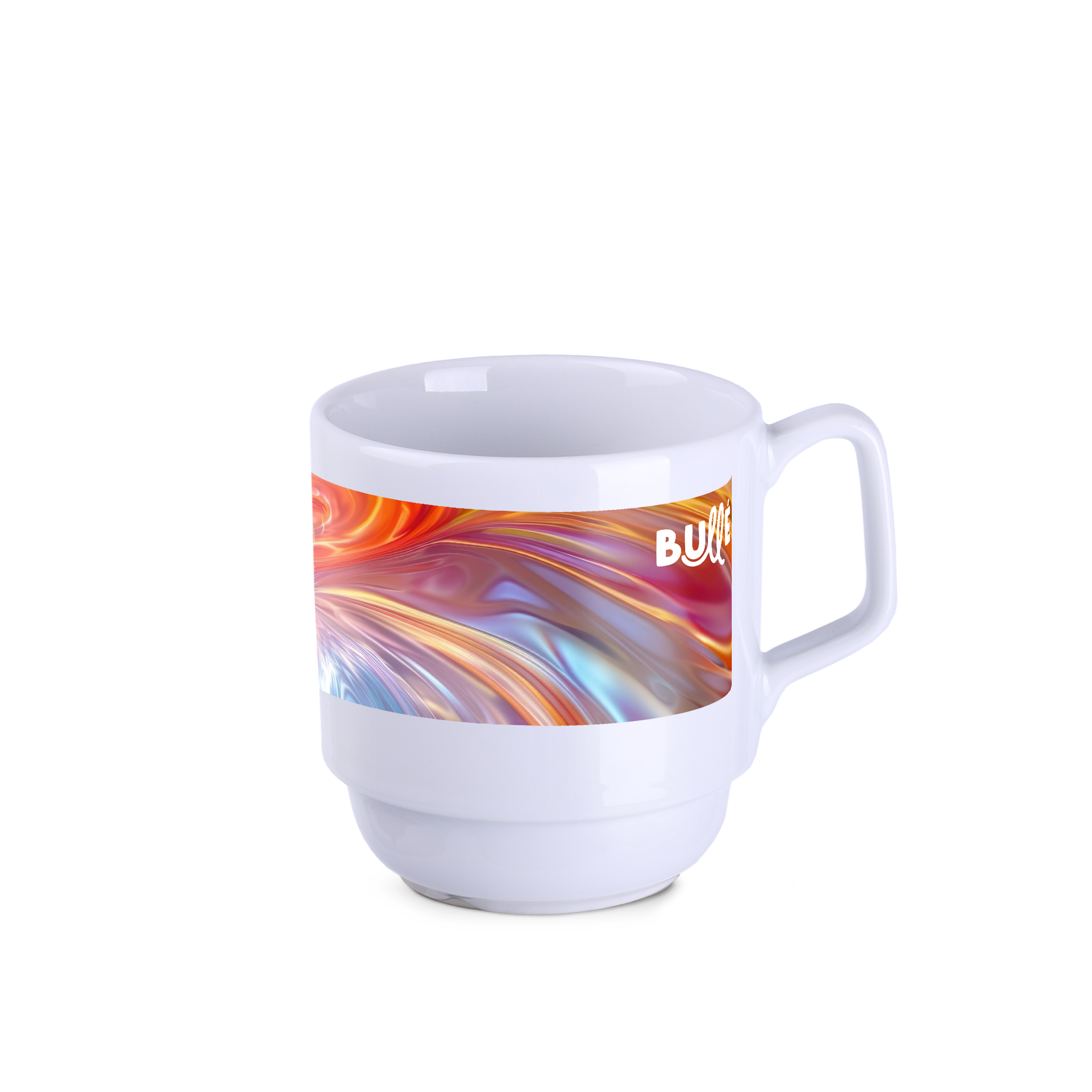 Porcelanowy kubek o oryginalnym designie. Jego kształt pozwala na sztaplowanie. Posiada specjalne kanaliki na spodzie, umożliwiające odprowadzanie wody pozostałej po myciu w zmywarce. Produkowany w Europie.