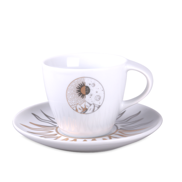 Subtelna porcelanowa filiżanka z efektownym uchwytem i dużymi możliwościami zdobienia.