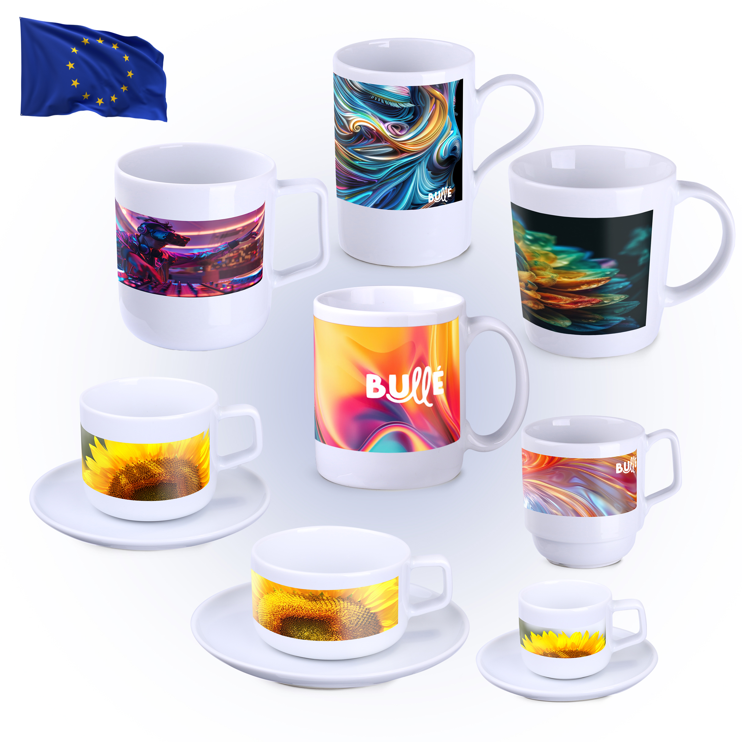 Nasze kubki oraz zdobienia spełniają wszystkie normy dotyczące kontaktu z żywnością, co potwierdzają niezbędne certyfikaty.